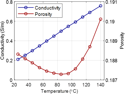 图1.样品B20在升温过程中电导率与孔隙度的变化规律。数据来源:Han等(2024)