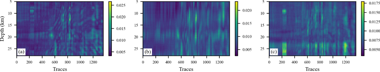 图2.VP(a)、VS(b) 和 (c) 残差的标准差