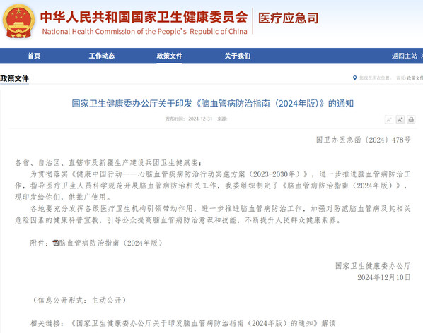国家卫健委:脑血管病防治指南(2024版)