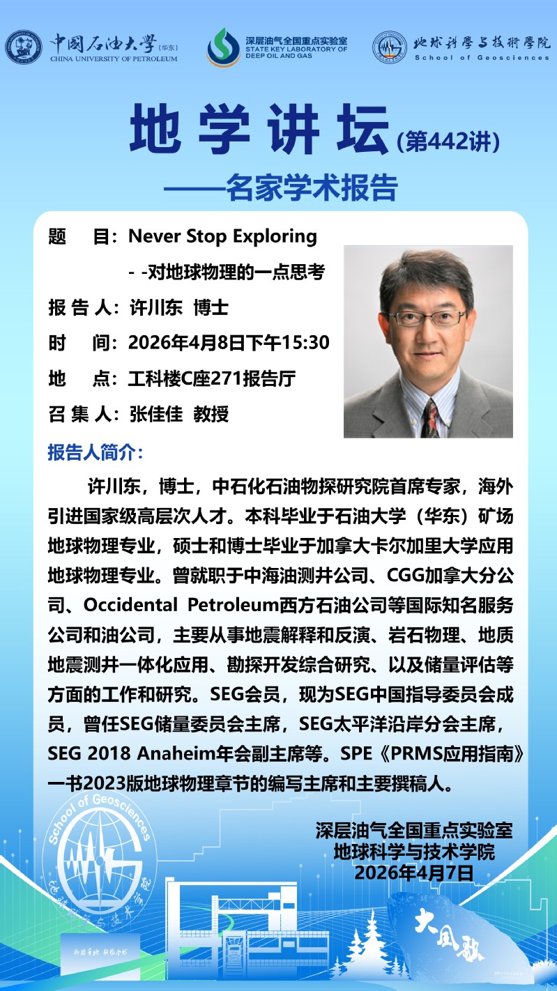 【地学讲坛第442讲】关于许川东博士《Never Stop Exploring - -对地球物理的一点思考》学术报告的通知