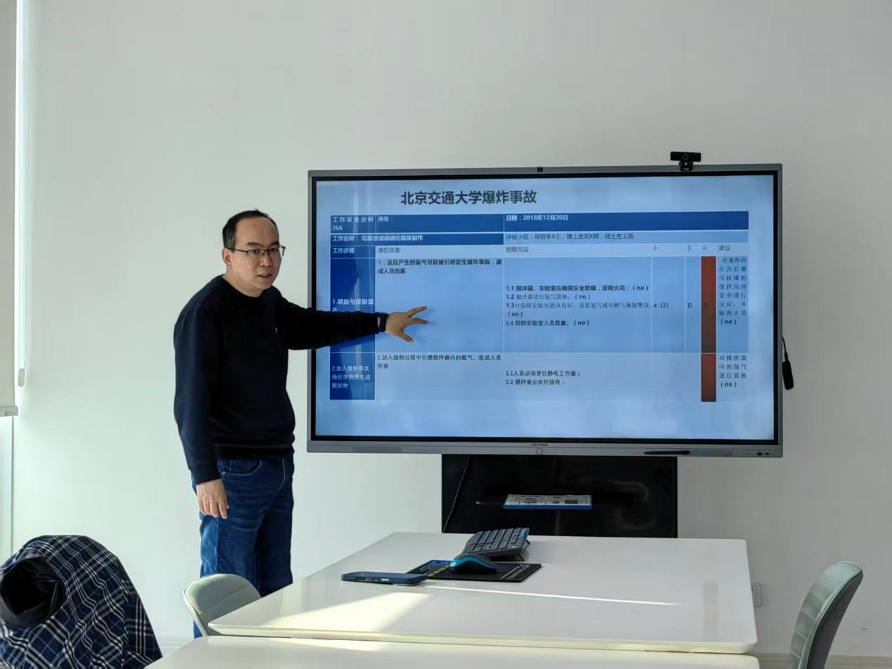 培训会上,付建民通过对实验室事故案例进行分析;从实验室安全培训不足、实验室安全设计不良、实验室危害辨识不佳、隐患排查与管理漏洞、实验室操作规程管理漏洞等五个方面对实验室事故发生的原因进行了剖析和讲解,并播放了几个典型实验室事故的视频,最后阐述了通过开展JHA分析活动、审核确定分析结论、形成作业程序、培训或告知、按照要求进行工作的流程如何更好地避免实验室事故的发生。会上实验室老师们与付建民进行了交流互动,纷纷表示要高度重视实验室安全,要呼吁学院师生全员重视实验室安全,从而保护师生的生命财产安全,保障安全平稳的教学和科研环境。