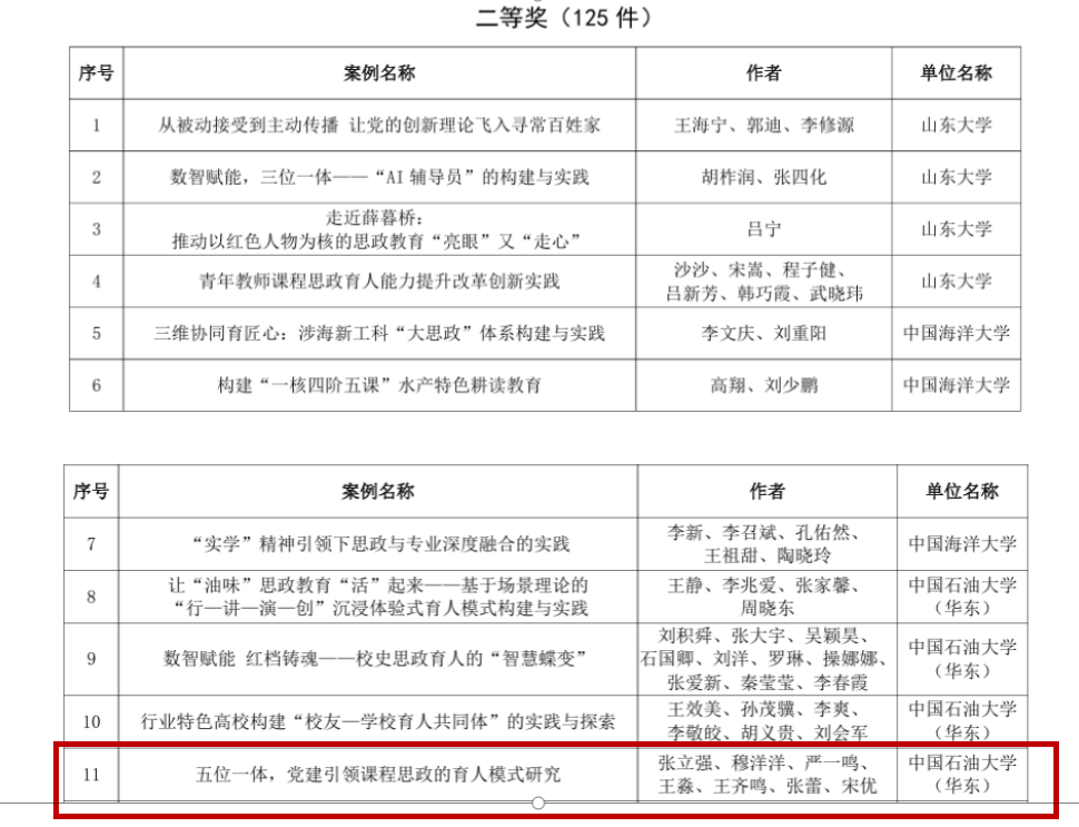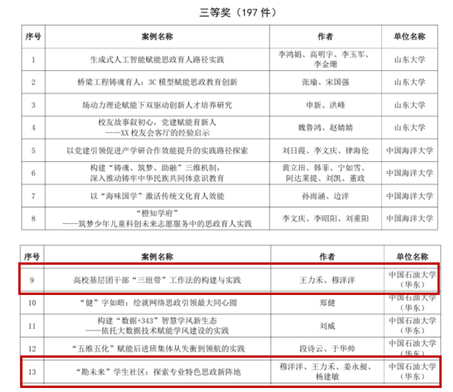 近日,2025年度山东省高等学校思想政治教育优秀论文和优秀工作案例揭晓,冰球官网申报的三项案例全部获奖。其中《五位一体,党建引领课程思政的育人模式研究》获优秀工作案例二等奖,《高校基层团干部“三纽带”工作法的构建与实践》、《“勘未来”学生社区:探索专业特色思政新阵地》获秀工作案例三等奖。